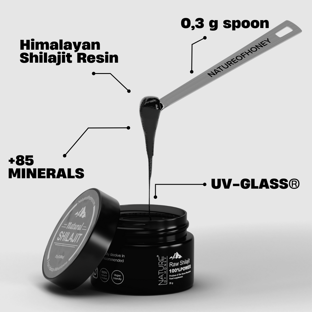 Shilajit er en sammensætning af planter, der findes i Himalaya, Hunza og Asiatiske bjerge. Den har en intens sort farve og en asfaltflydende tekstur. Shilajit er blevet dannet af naturen efter en proces, der varer tusinder af år. Shilajit er beskrevet som rig på mineraler og en enenergibooster, der kan forbedre din fysiske og kognitive styrke, forbedre energiniveauet og hjernefunktion, fremme restitution og en række andre sundhedsfremmende fordele.