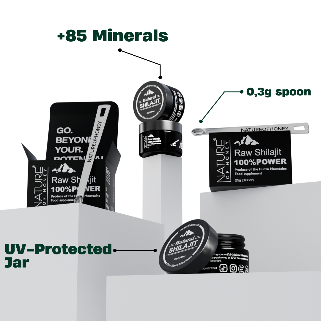 DoShilajit™ indeholder over 85 forskellige mineraler i deres ioniske form, hvilket gør det til en potent kilde til essentielle næringsstoffer. Blandt disse mineraler omfatter nogle af de mest betydningsfulde magnesium , calcium , jern , zink , kobber og selen . Disse mineraler bidrager til forskellige kropsfunktioner, såsom energiproduktion, knoglesundhed, muskelfunktion og immunstøtte. Derudover er DoShilajit™ rig på fulvinsyre , som øger biotilgængeligheden af disse mineraler, hvilket sikrer optimal absorption og udnyttelse af kroppen. Denne unikke sammensætning gør DoShilajit™ til et værdifuldt supplement til dem, der ønsker at øge deres generelle sundhed og velvære.